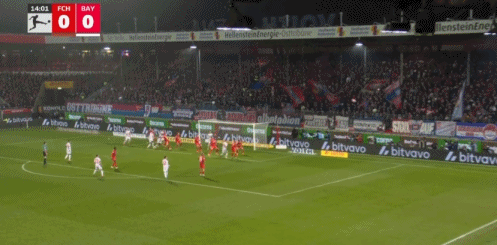 第15分钟,拜仁角球,斯塔尼希奇头球破门,拜仁1-0海登海姆。