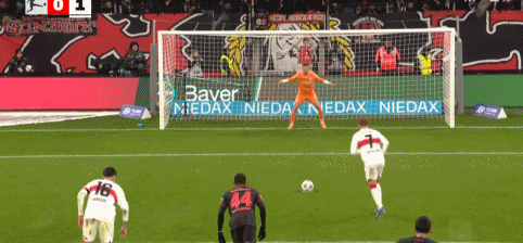 第66分钟,沙博特禁区犯规送点,格里马尔多操刀点射命中,勒沃库森1-4。