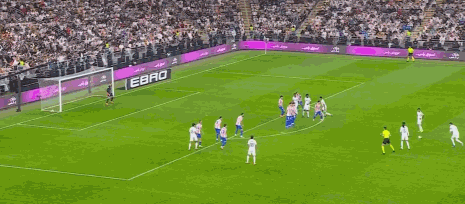 第2分钟,世界波!巴尔韦德任意球直接轰入死角,皇马1-0。