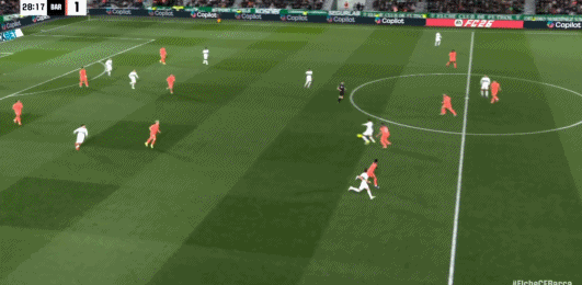 第29分钟,阿尔瓦罗-罗德里格斯反越位单刀低射破门,埃尔切1-1!