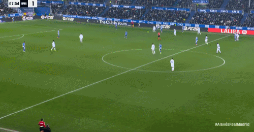 第69分钟,上场就进球,比森特单刀抽射破门,阿拉维斯1-1皇马。
