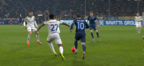 第81分钟,九人领先,诺斯林抢断调整推射破门,拉齐奥1-0。