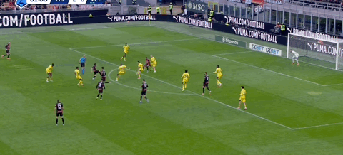 第45分钟,拉比奥头球摆渡,普利希奇后点推射破门,米兰1-0领先。