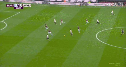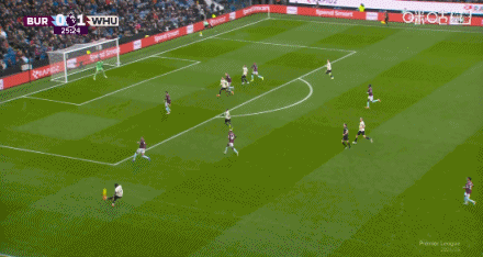 第25分钟,迪乌夫传中,卡斯特利亚诺斯头槌破门,伯恩利0-2西汉姆联。