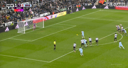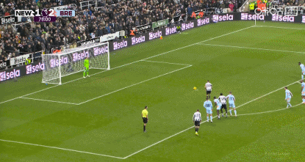 第78分钟,卡约德防守犯规送点,吉马良斯点射命中,纽卡2-2布伦特福德。