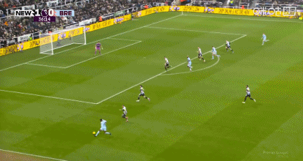 第45分钟,墨菲禁区手球,蒂亚戈主罚打进,纽卡1-2布伦特福德。