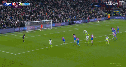 第41分钟,努内斯传中,哈兰德头球建功,曼城客场1-0领先水晶宫!