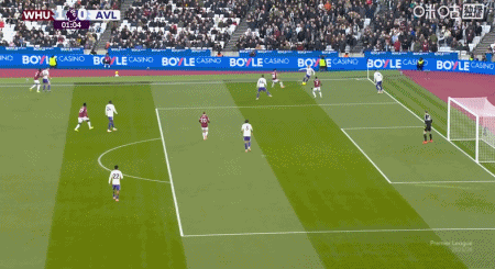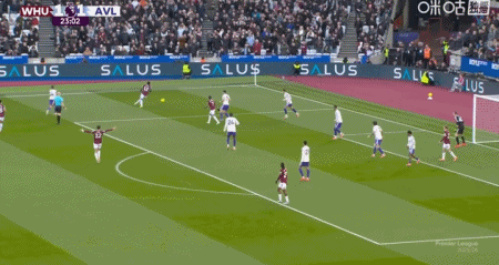 第24分钟,波茨助攻,鲍恩门前点射破门,西汉姆联2-1维拉。
