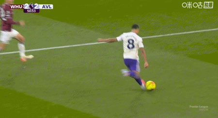 第50分钟,蒂勒曼斯传中,罗杰斯停球射门一气呵成,维拉2-2西汉姆联。