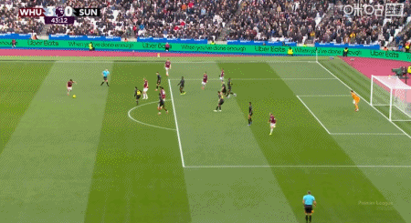 第43分钟,费尔南德斯外围远射破门,西汉姆联3-0桑德兰。