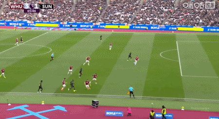 第14分钟,鲍恩右路底线传中,萨默维尔头球破门,西汉姆联1-0桑德兰。