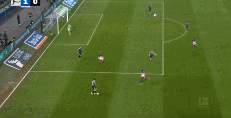 第18分钟,科林斯传球失误送大礼,洛孔加低射破门,汉堡1-0法兰克福。