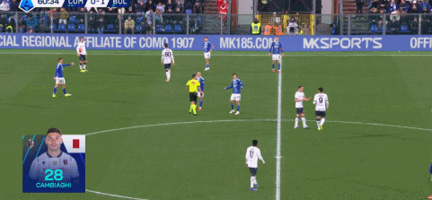 意甲第20轮:十人博洛尼亚1-1遭科莫绝平,坎比亚吉建功,巴图里纳救主