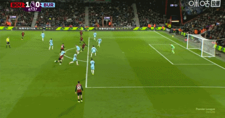 第90分钟,爱德华兹传中,布罗亚头球破门扳平比分,伯恩利1-1。