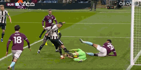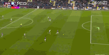第90+2分钟,伯恩利后场失误,吉马良斯吊射破门,纽卡3-1。